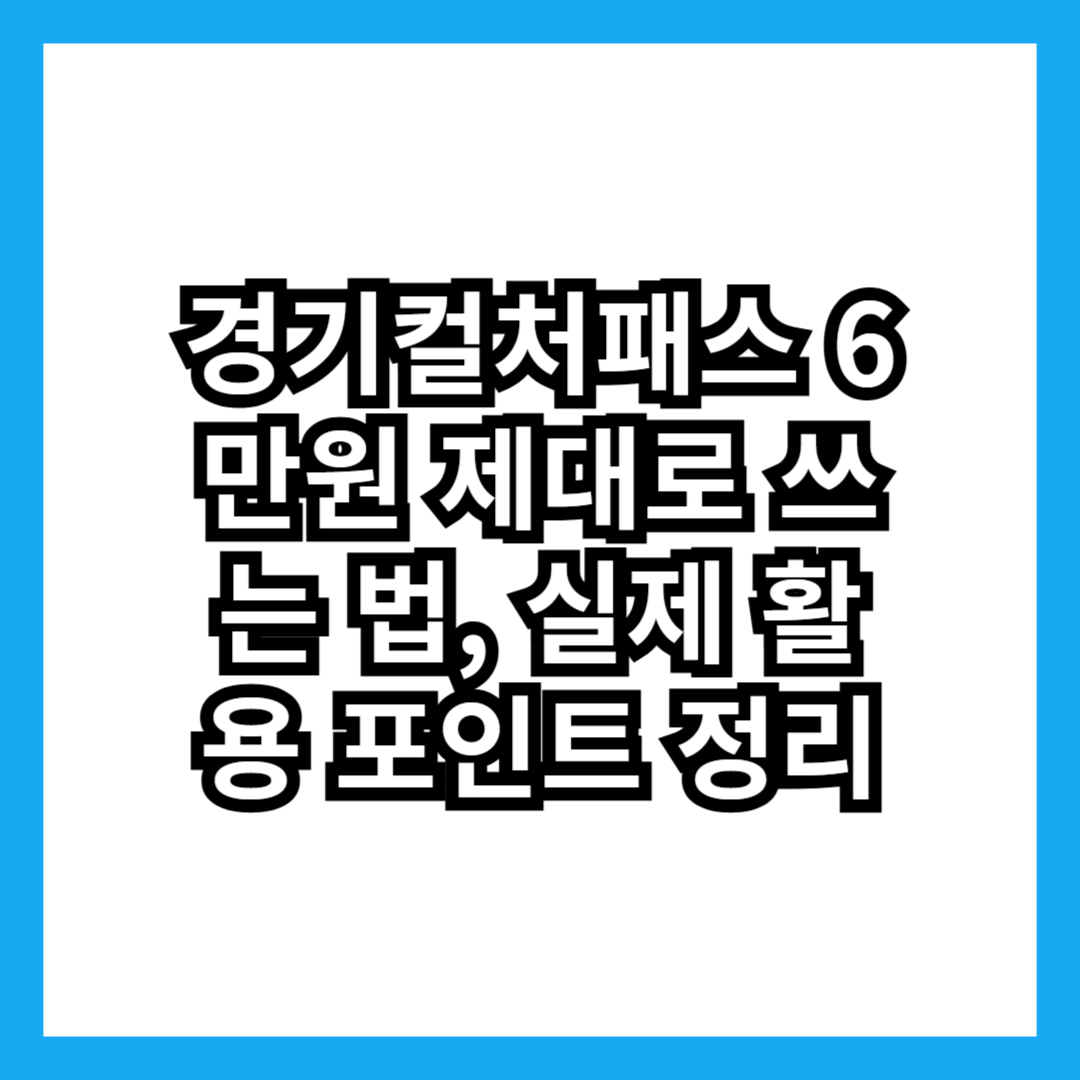 1. 경기컬처패스 6만원, 제대로 쓰는 게 중요한 이유