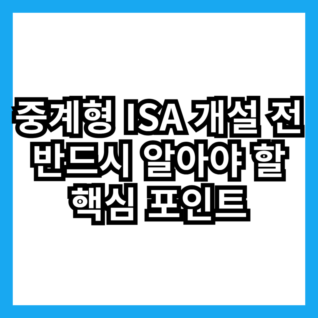 중계형 ISA 개설 전 반드시 알아야 할 핵심 포인트