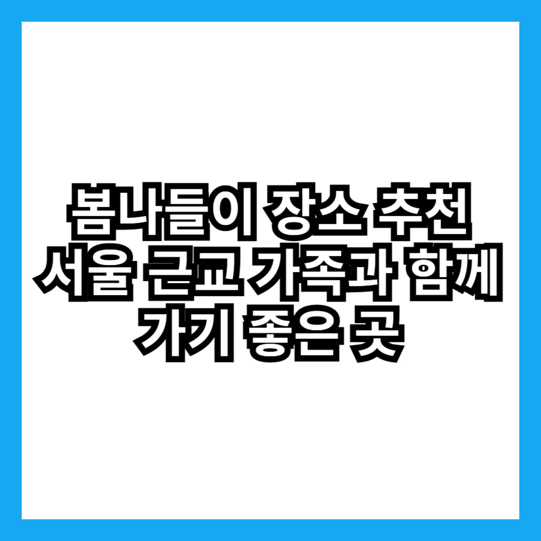 따뜻한 햇살과 살랑이는 봄바람이 반기는 계절, 봄. 가족과 함께 봄나들이를 계획하고 있다면 서울 근교는 최고의 선택지가 됩니다. 이동 시간은 짧고, 자연을 만끽할 수 있는 명소들이 가득하기 때문이죠. 아이부터 어른까지 모두 만족할 수 있는 다양한 체험과 휴식 공간이 기다리고 있어 특별한 하루를 만들 수 있습니다.
