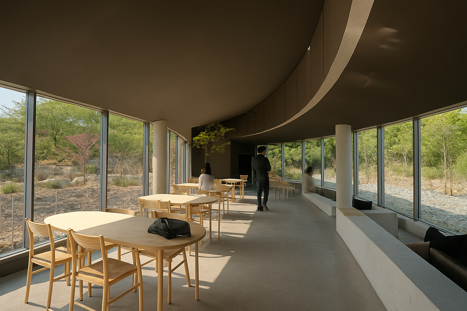 나무 테이블과 금속 소재 의자, 곳곳에 배치된 녹색 식물들이 차가운 느낌을 부드럽게 중화시키며, 전체적으로 편안하고 따뜻한 분위기를 자아냈습니다. 창가 자리에서 커피 한 잔과 함께 바라보는 골목 풍경은, 마치 시간이 느리게 흐르는 듯한 착각을 불러일으켰습니다.