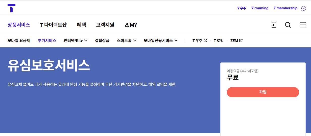 아래 유심보호서비스바로가기나 T월드 화면 누르시면 해당 가입화면으로 바로가기 됩니다.