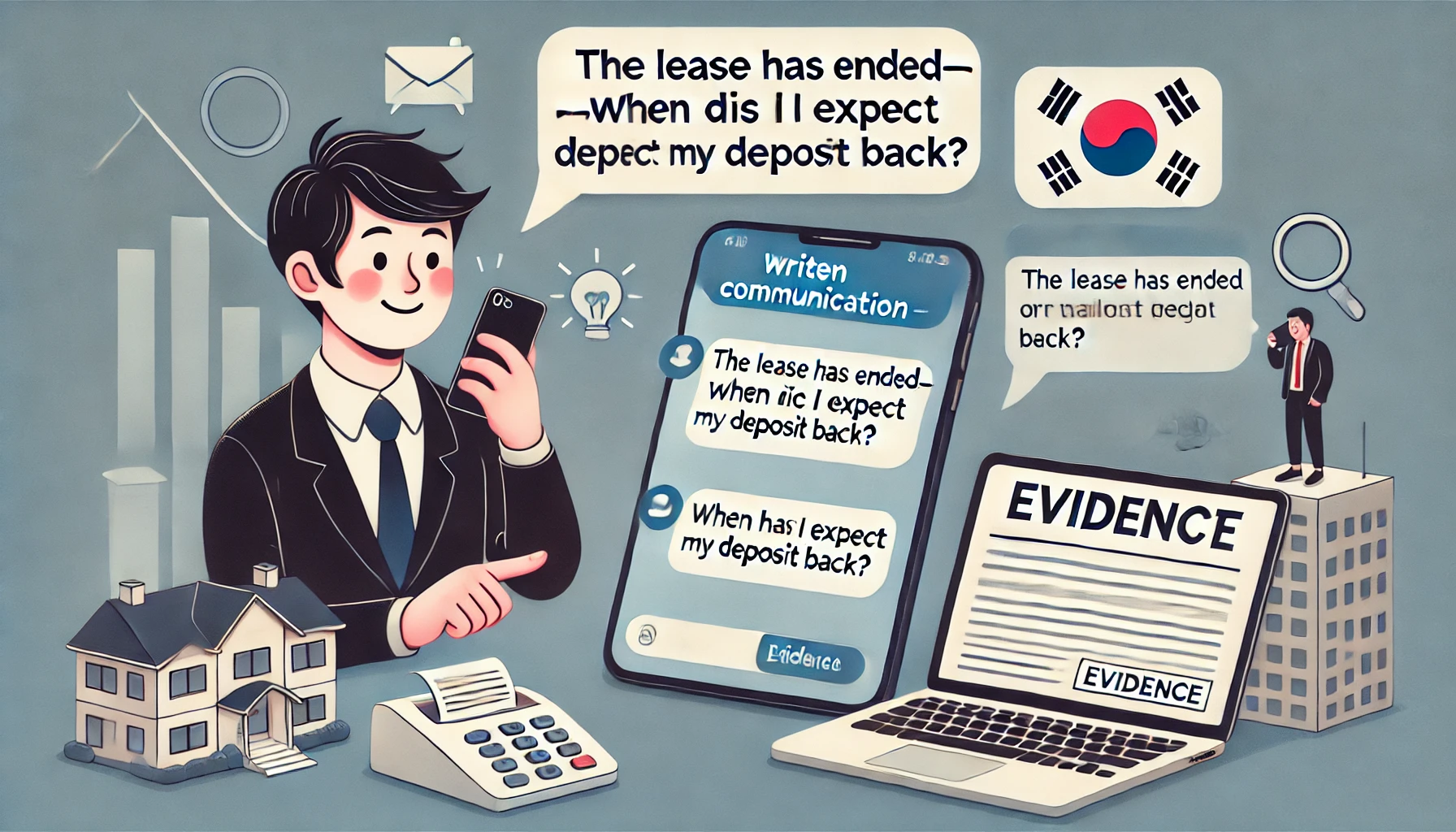 임대인과의 대화는 되도록 문자(SMS), 메신저, 이메일 등 '기록이 남는 방식'으로 주고받는 것이 좋습니다. 구두 통화는 나중에 입증이 어려우며, 소송에서 증거로 채택되기 힘듭니다. 예를 들어, “계약이 종료되었으니 보증금을 언제 돌려주실 수 있나요?”와 같은 메시지를 남기면, 임대인의 답변 내용에 따라 명확한 '지급 의무 인정 여부'를 확인할 수 있어 법정에서도 강력한 증거가 됩니다. - 임대인 주소를 정확히 확보해두기