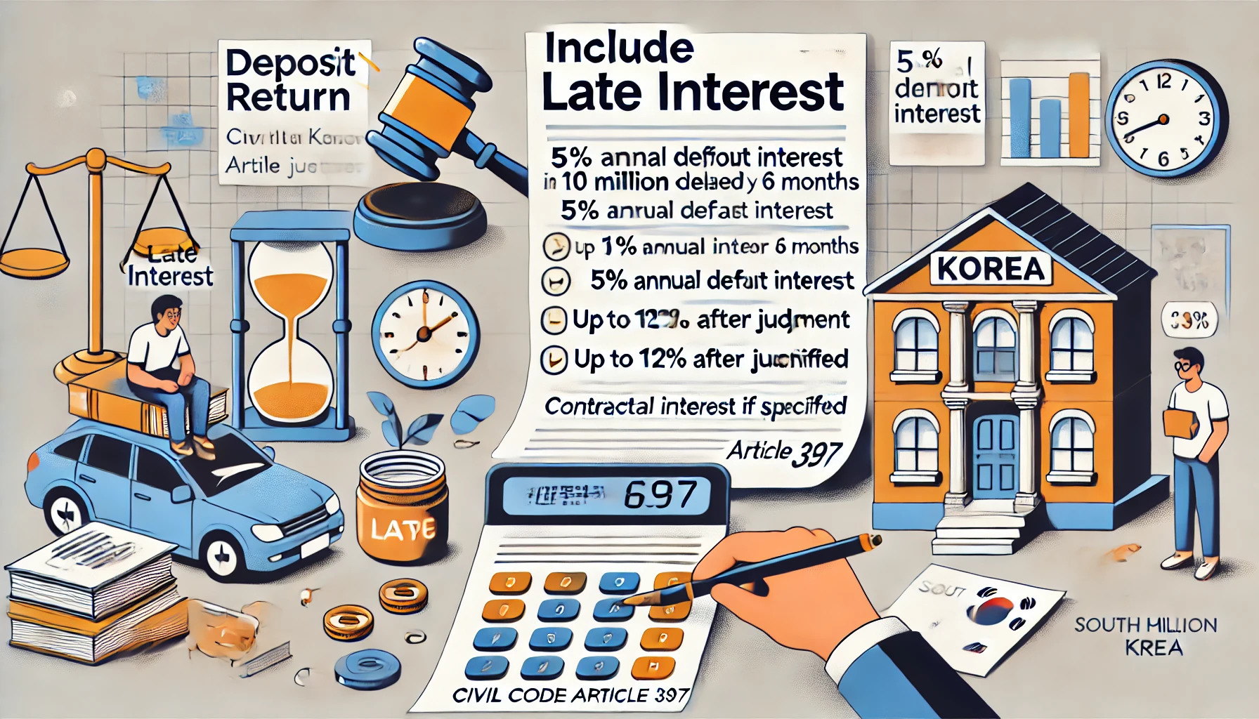 보증금을 제때 돌려받지 못한 경우, 민법 제397조에 따라 '이자(지연손해금)'를 청구할 수 있습니다.- 지연이자는 원칙적으로 연 5%