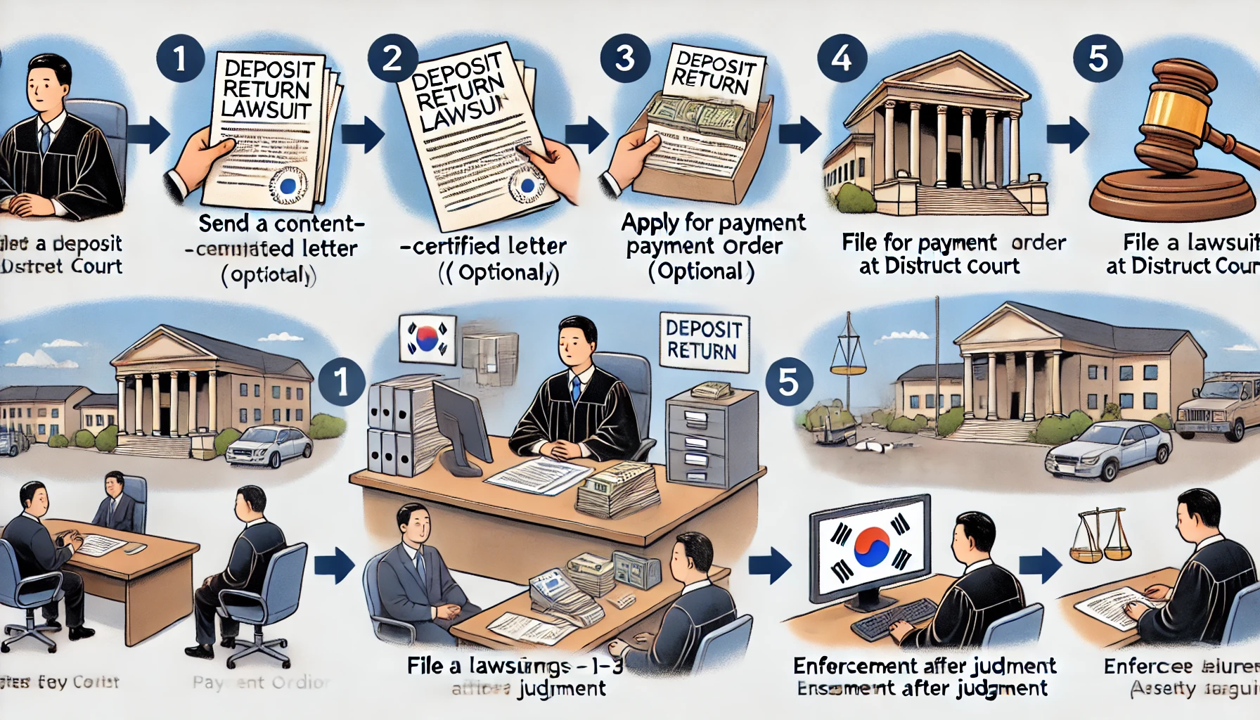 - 정식 소송 접수: 관할 지방법원 민사과에 소장을 접수합니다.