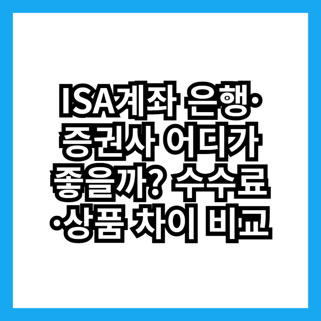 ISA계좌 은행·증권사 어디가 좋을까? 수수료·상품 차이 비교