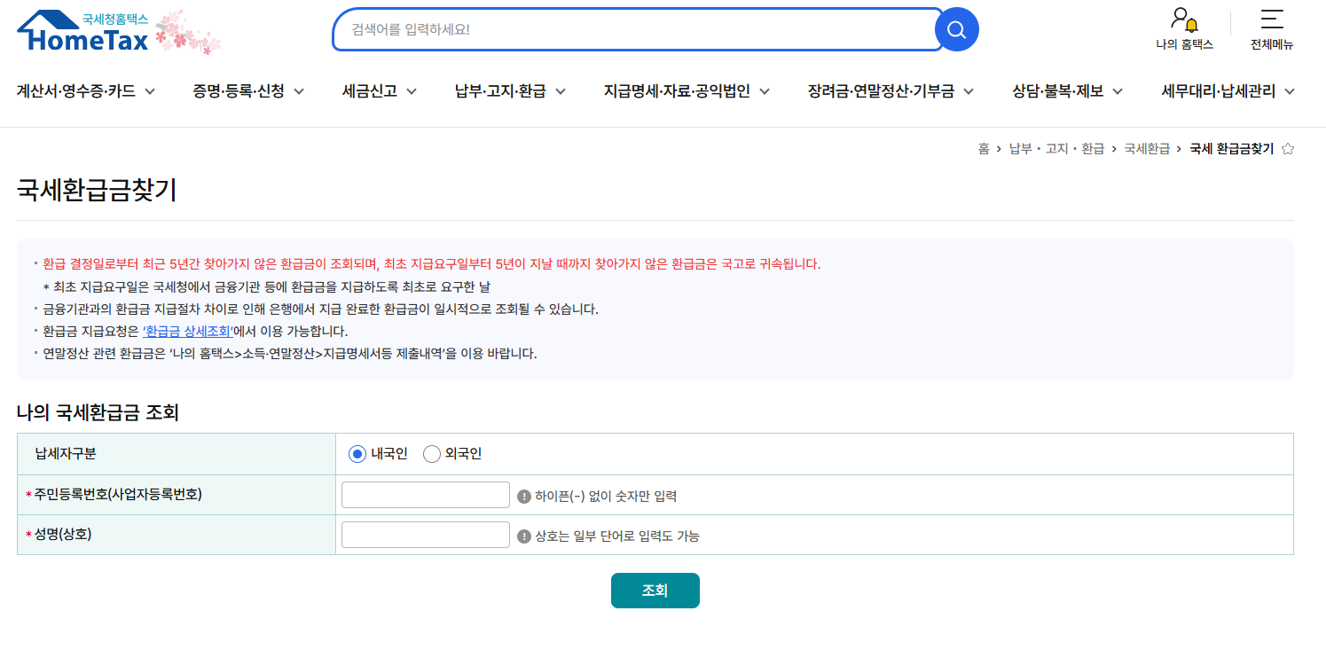 홈택스에서 미환급금 조회하는 방법 (PC 기준)
