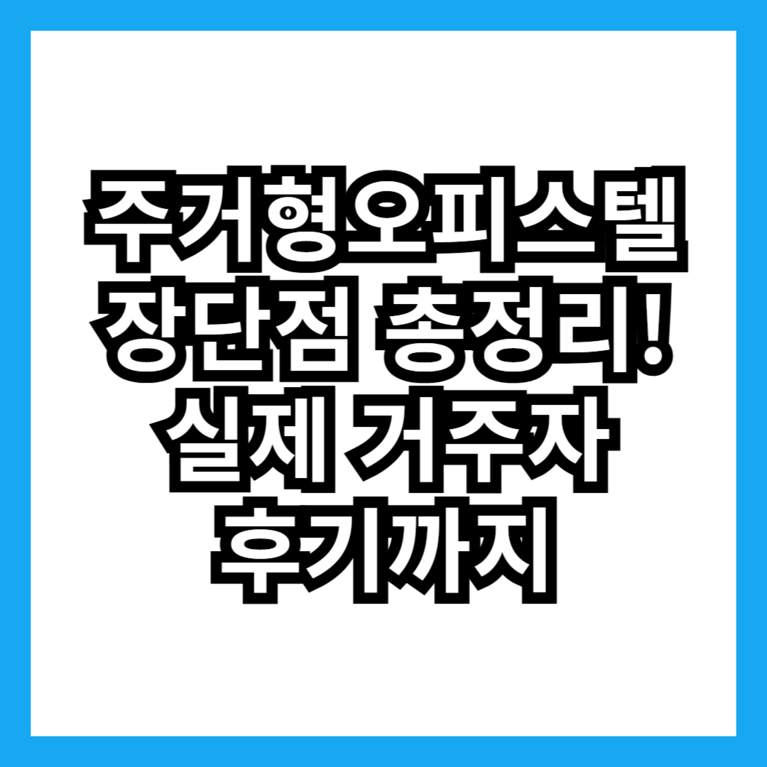주거형 오피스텔 장단점 총정리! 실제 거주자 후기까지