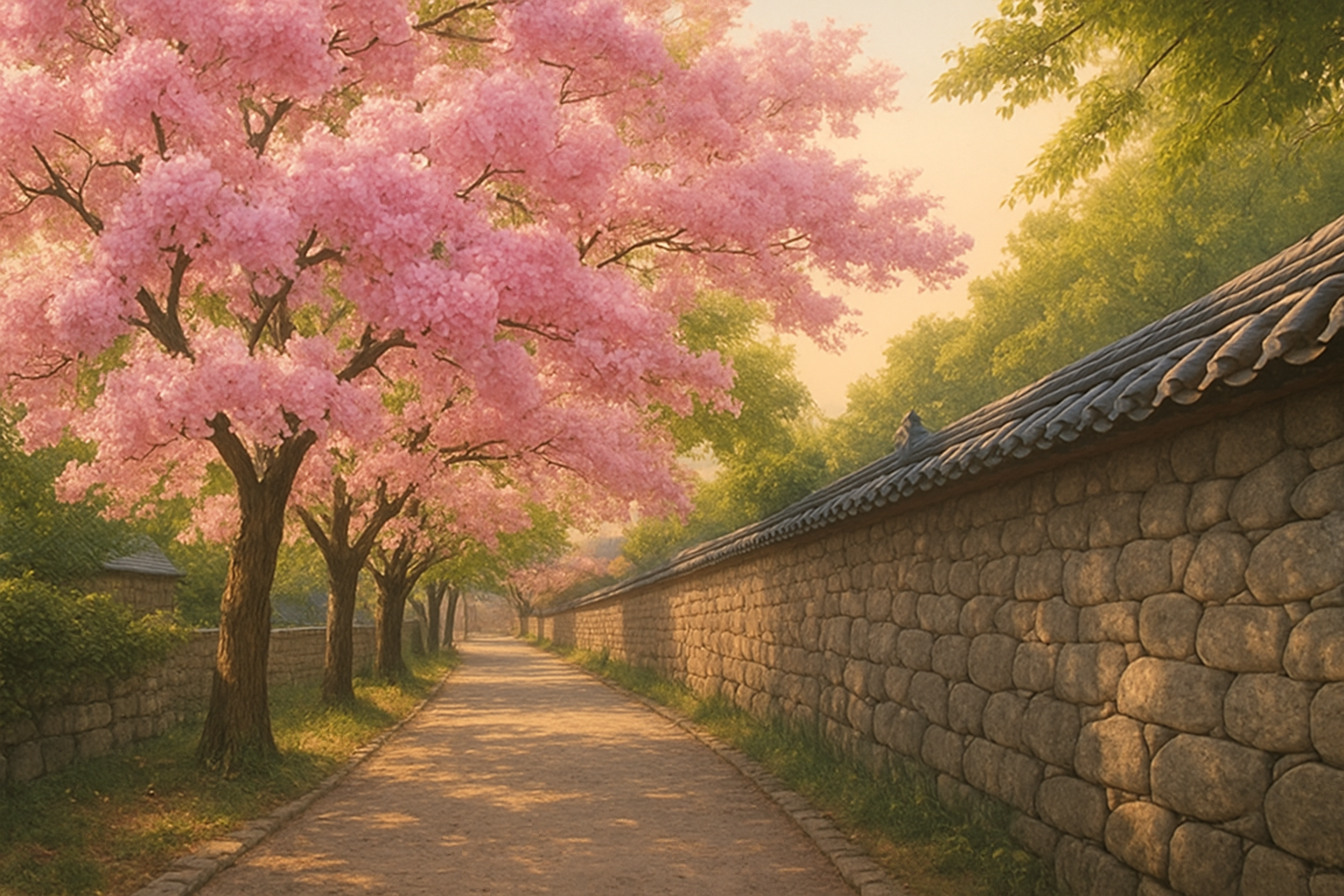 경주는 봄마다 벚꽃 명소로 유명하지만, 대릉원 돌담길 주변은 늦봄에도 겹벚꽃이 만개하여 또 다른 매력을 뽐냅니다. 고풍스러운 돌담길 위로 흘러내리는 핑크빛 겹벚꽃은 시간까지 느리게 흐르게 만듭니다.