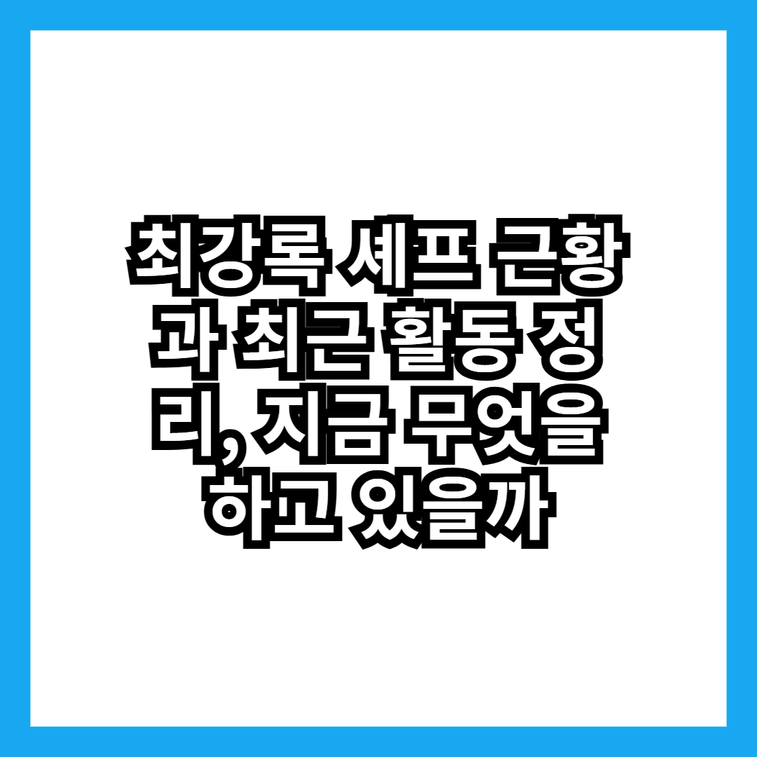 최강록 셰프 근황과 최근 활동 정리, 지금 무엇을 하고 있을까